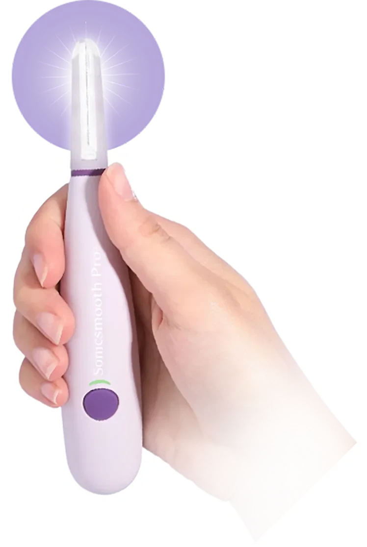 With one quick glide, Sonicsmooth Pro+ eliminates the entire layer of dead skin, peach fuzz, and facial hair that covers up your beautiful, natural glow. Enjoy smoother, brighter, younger-looking skin in under 5 minutes!